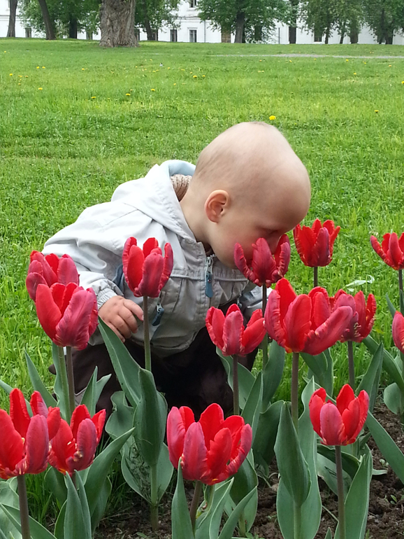 Дима с уважением относится к растениям, по моей просьбе трогает их только одним пальцем. Дома ещё зимой научится так делать - тренировался на моих букетах роз)))