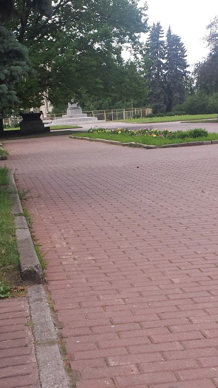 Напротив биологического факультета зашла на территорию МГУ. По-видимому, здесь раньше было более ухожено, явно был какой-то цветник, от него в стороны ведут местами выложенные плиткой дорожки. Заинтересовалась, стала читать в интернете про озеленение территории МГУ, как и думала, везде, а не только вокруг главного здания проводились специальные ландшафтные работы. Наверное, раньше здесь было красиво.