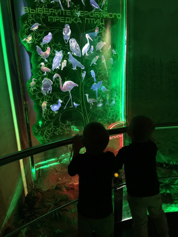 Что понравилось: отличные интерактивные выставки: мы были на 4д- аттракционе "невероятные приключения в океане", в лабиринте "пройди путем эволюции" + в самих залах есть интерактивные столы с заданиями и компьютеры со слайд-шоу и столы, где нажав кнопку, можно послушать голоса разных животных; много мест для отдыха - везде есть диванчики и стулья; в первой половине дня было мало народа; есть небольшая игровая зона на 0 и 3 этаже.