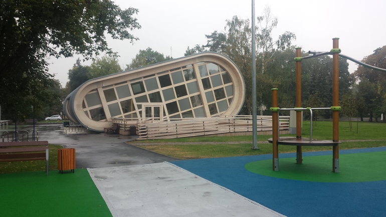 Рядом есть интересное сооружение, где мои тоже с удовольствием побегали (хорошо, что внутри было закрыто))) - шахматный клуб.