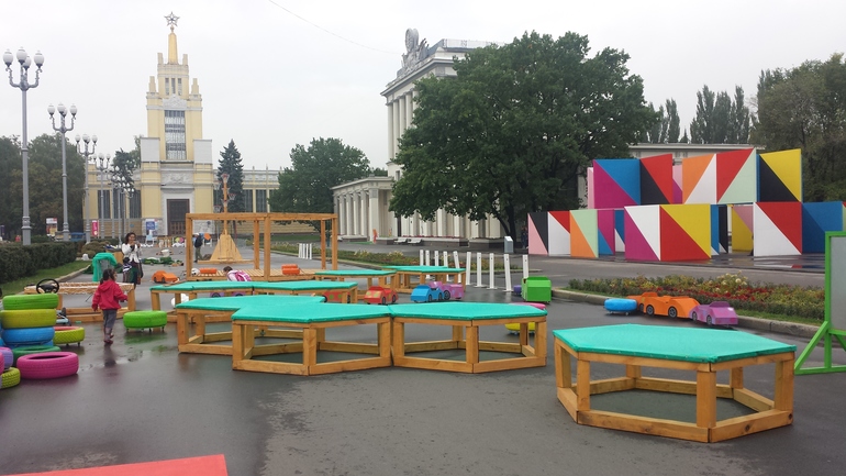 2. На ВДНХ есть детские площадки. Насколько я знаю, они появились в этом году. И это радует, потому что ребенок тоже хочет получить свою законную часть отдыха. Про них напишу ниже.