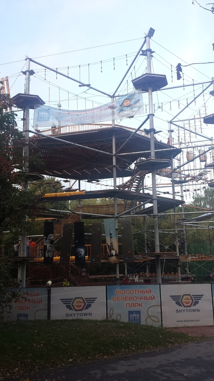 Еще раз перекусили фруктами у Мичуринского парка, откуда и увидели веревочный городок (о нем я тоже читала у Анны).