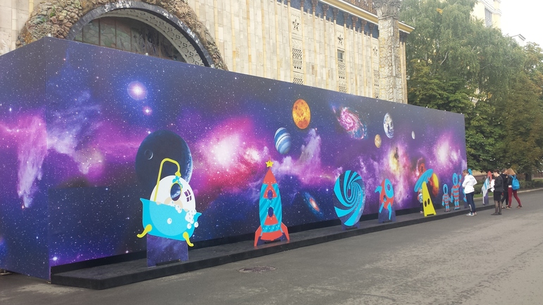 Дальше перед павильоном Украина разместилась площадка для фотографирования маленьких и не очень космонавтов. Не знаю, убрали ее после Дня города или нет, надеюсь, что нет.