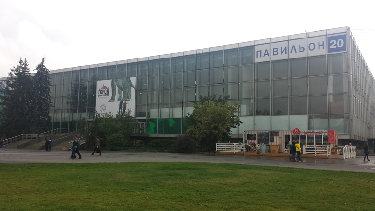 Дошли до павильона Космос и свернули налево. Дочка увидела афишу с динозаврами, пыталась меня затащить затащить на выставку Город динозавров.