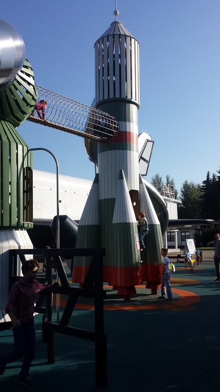 Ну и на десерт заглянули на площадку Космос. К сожалению, тут хороших фото не удалось сделать, мелкий ныл и еле-еле заснул. А потом уже и домой пора было возвращаться. Площадка, на мой взгляд, для подростков не будет интересна, а всем, кто помладше, очень даже подойдет. За моим младшим точно пришлось бы бегать и удерживать от желания залезть в высокие ракеты, потому как залезть, он залезет, а вот спускаться по лестнице или горке часто не хочет. Спокойно может зависнуть в переходе между ракетами, а я туда точно не влезу)))