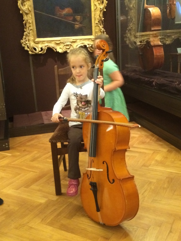 Немного рассмотрели. Купили и повесили на стену музыкальный плакат с разными инструментами, смотрим набор карточек Умница. И вот после этого попали в музей Глинки на экскурсию Чипполино. Ребенку 3,7. Понравилось очень. В силу того, что все таки подготовились было очень легко и интересно. После экскурсии обошли еще раз всю экспозицию, посмотрели, задавала много вопросов. Теперь по самой экскурсии - это чудо, что такие мероприятия существуют! Это чудо, что есть такие люди с блеском в глазах, которые хотят и умеют работать с детьми. Вся экскурсия проходит в форме эдакого квеста - веселый поиск спрятанных в залах овощей и фруктов, затем общение и немного информации об инструментах, а потом то, что не оставит равнодушным ни одного ребенка- возможность подудудеть, постучать, позвенеть: выдували из трубы вредного Принца Лимона, пытались развеселить похожего на виолончель Дядюшку Грушу, топали вместе с дядюшкой Тыквой под звуки маракасов и много чего еще! И все это под волшебную музыку Хачатуряна! Атмосфера сказочная и позитивная, экскурсовод - потрясающий, в постоянном контакте с детьми, информации как раз необходимый минимум для этого возраста. Идти ли на экскурсию? Мое мнение - бежать, теряя тапки! Именно такие мероприятия развивают в наших детях вкус и любовь к искусству. Возраст - мое мнение от 4х. Трехлетки только с опытом хождения куда -то и управляемые. Иначе это превращается просто в сумасшедшее стучание, звон и беготню.