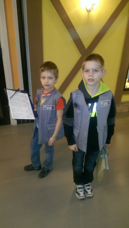 Везде выдают спец одежду. Врачам халаты,инкассатором бронежилеты,пожарным и строителям каски. Максима порадовал процесс переодевания. Однозначно интересная задумка. Дети учатся видеть, что деньги не просто достаются,а надо именно их заработать. И порой не легким трудом.