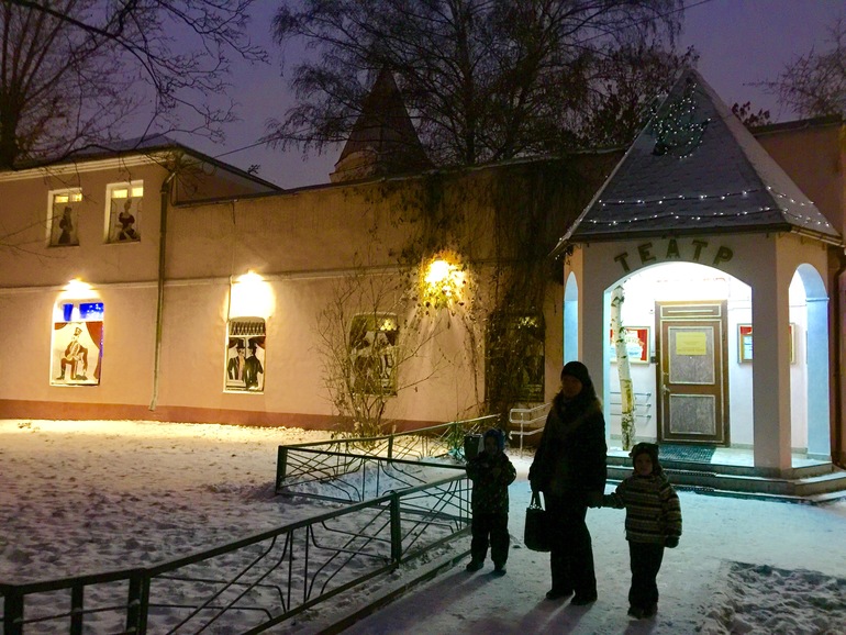 Сам театр очень красивый: снаружи выглядит как розовый замок, внутри тоже интересно оформлен - камины, фортепьяно, бархатные банкетки, музыкальная движущаяся мельница, дуб с золотой цепью и ученым котом; даже туалеты расписаны - у мальчиков нарисованы пираты, у девочек принцессы 😉 В фойе играет классическая музыка.