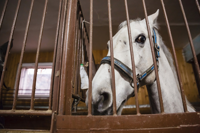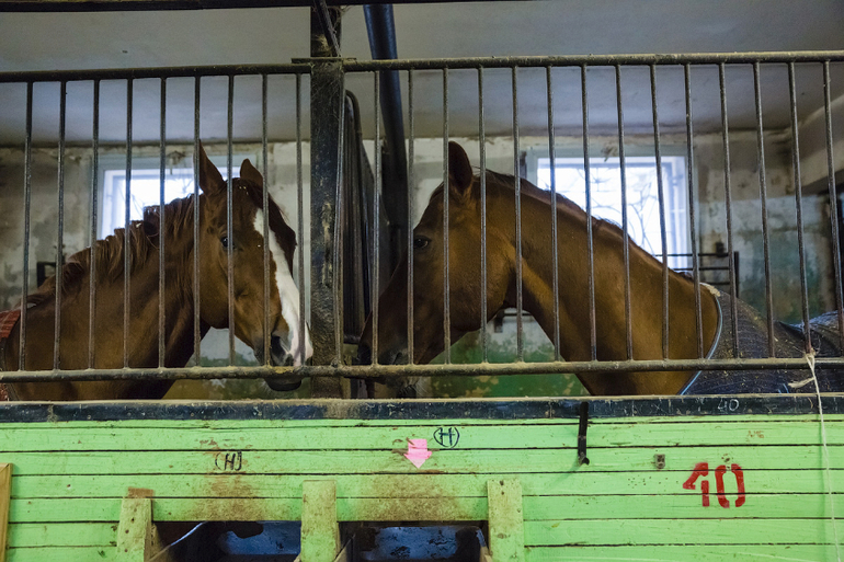 Обходим денники (помещение где находятся лошади)