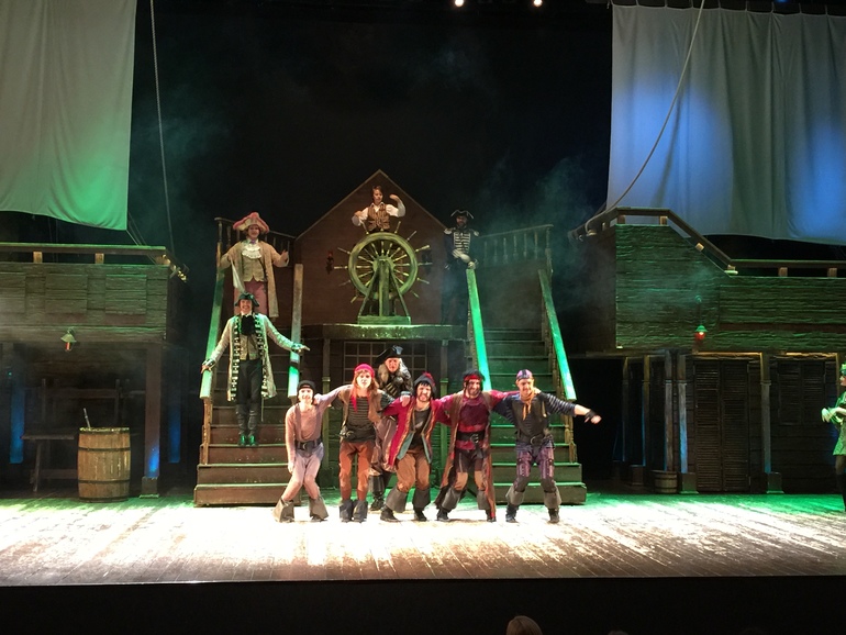 Ещё для меня некоторые номера были лишними - например, если вырезать песни девушек-пираток, спектакль ничего не потеряет, но минут на 30 сократится)) но это скорее мнение мамы 5-летних детей. Более старшим деткам и подросткам они понравились.