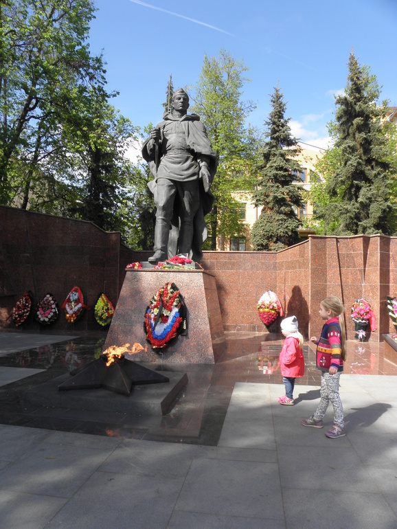 Здесь же небольшой парк с Вечным огнем и памятником павшим в ВОВ. Здесь всегда организуются концерты в честь 9 мая: