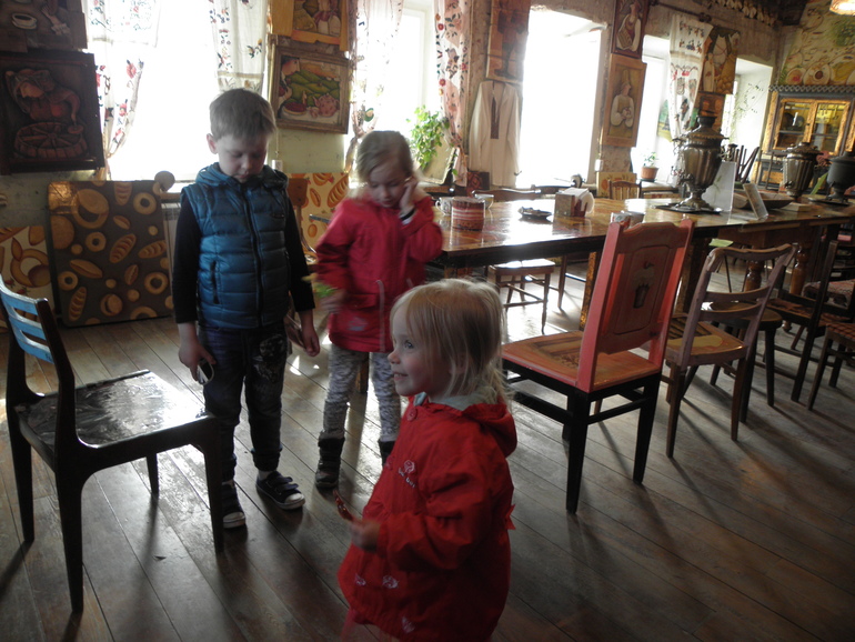 Первый этаж, где находится касса, она же барахолка, она же продает чаи и сладости, плюс две комнаты, где проводят мастер-классы по росписи пряников, выпечке бубликов.