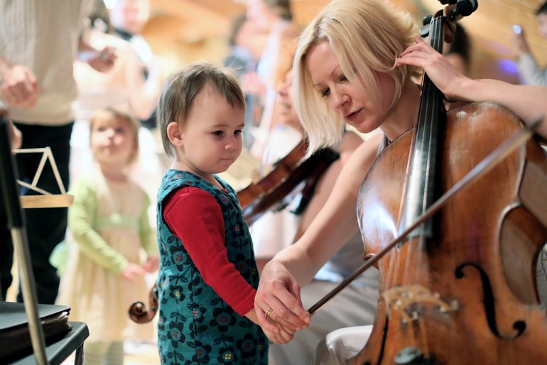 Во время наших концертов родители могут отдыхать, слушая любимую музыку, а малыши танцевать, рисовать, изучать мир и даже подходить к музыкантам. В заключении концерта дети музицируют вместе с музыкантами и знакомятся с музыкальными инструментами.