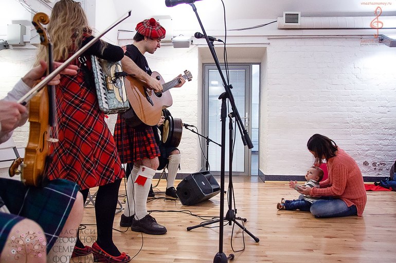 Во время наших концертов родители могут отдыхать, слушая любимую музыку, а малыши танцевать, рисовать, изучать мир и даже подходить к музыкантам.