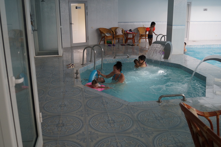 мы и летом были и осенью,просто рядом живем,Летом еще более менее но особо делать нечего,бассейн маленький вода холодная...номера на час тут же(понятно для чего)и насчет чистоты сомнительно,после корибии туда не пойду больше...лучше час на дорогу потратить но зато отдохнуть хорошо)Мы во вторник туда собираемся,для 3 летки круг возьмите потому что жилет для них рано еще,а кругов там нет