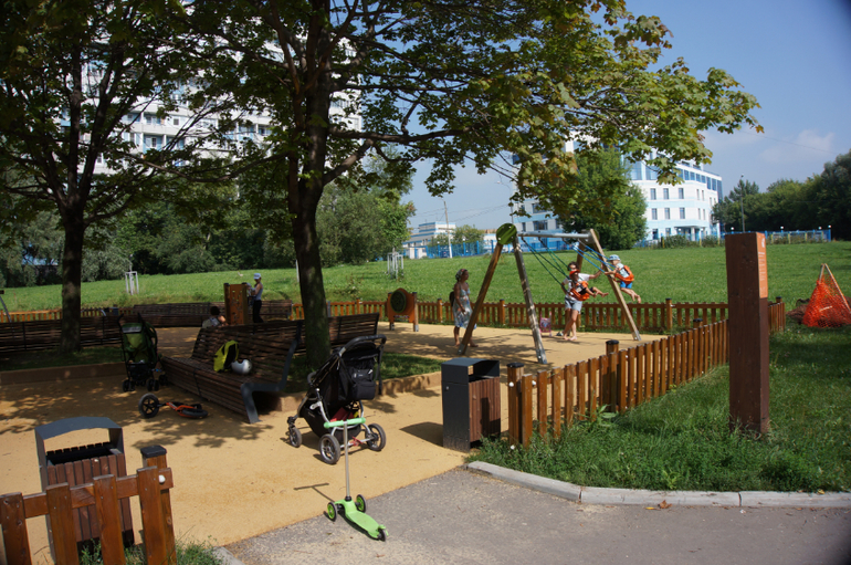 Совершенно неожиданно для себя открыли парк Садовники. Живя в этом районе больше полугода, ничего не знали и не слышали об этом парке, постоянно гуляли в Коломенском, где совершенно бедно с точки зрения детских площадок.