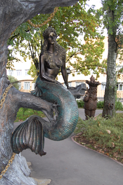 А это сказочная русалка, висящая на ветвях дуба. На заднем плане спина доброго лешего.