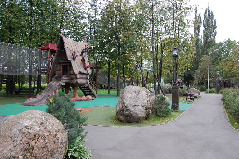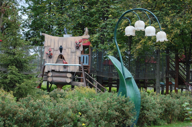 Это лишь небольшая часть парка, в котором живут говорящие гусеница, черепаха и дракон, можно абсолютно бесплатно покататься на карусели, посидеть на троне самого Кащея Бессмертного, найти ступу с Бабою Ягой и посидеть в домике Незнайки и его друзей.