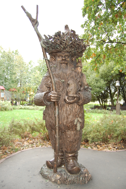 А вот и добрый Леший именно такой, каким и должен быть: с вытянутыми ушами, мягкой бородой; с ежиком в рукаъ и белочкой на плече, с птенцами в шляпе и шишками на платье. Более добрый и понятный ребенку образ слоёно придумать