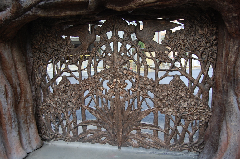 Рядом со входом расположен лягушачий фонтан: очень зеленый и одновременно теплый.