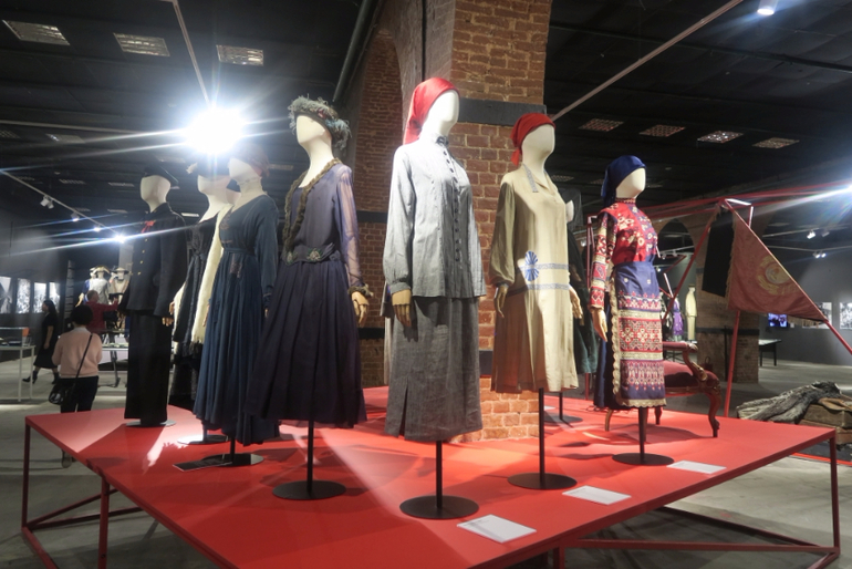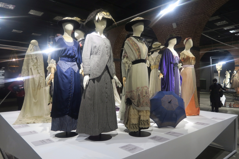 Вся выставка поделена на три части:эпоха модерна, эпоха революции и времена НЭПа. И отдельно представлены платья русских домов моды организованые эмигрантами за границей.
