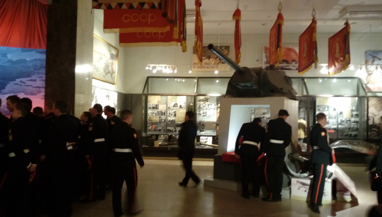Для самостоятельного осмотра экспозиций, всех описаний и пояснений на табличках вполне достаточно, можно обойтись и без экскурсовода. Правда, не всё успели подробно и тщательно посмотреть, времени не хватило. Да и в этот день было очень много Суворовских курсантов, к некоторым экспозициям было невозможно даже подойти. Но я пообещала сыну,что в ближайшее время мы обязательно сюда вернемся. Ушли от туда уставшие , но довольные, и почерпнувшие много полезной информации. В общем, музей обязателен для посещения, особенно для мальчишек !