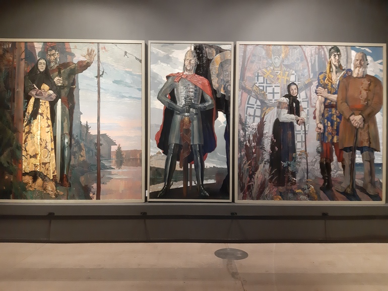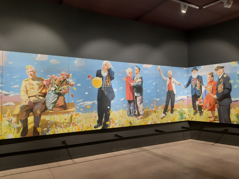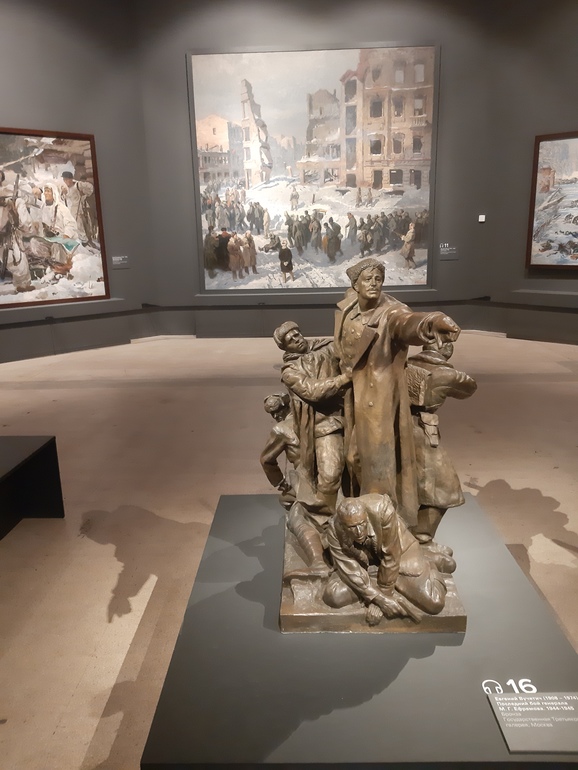 Она предваряет юбилейные торжества к 75-летию победы. Ее масштаб впечатляет: 150 произведений искусства, посвящённых теме великой отечественной войны и привезённых из разных уголков нашей страны, некоторые из которых никогда ранее не представлялись широкой публике.