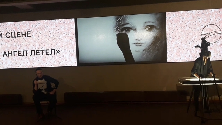Вторая локация - премьера спектакля "История одного города ", получившая президентский грант режиссёр Ирина Линдт, одна из ролей- Сын Золотухина Иван