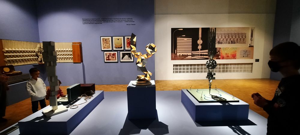 Выставка интересна тем, что там собраны материалы, различные конструкции, световые и звуковые инсталляции и многое другое, созданное ещё в далёких 1960-1970 годах.