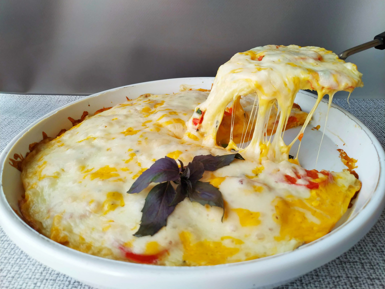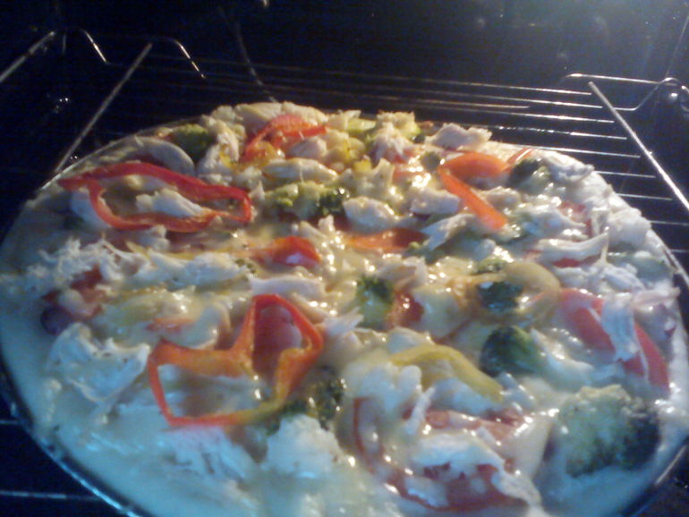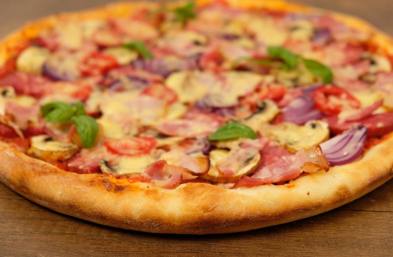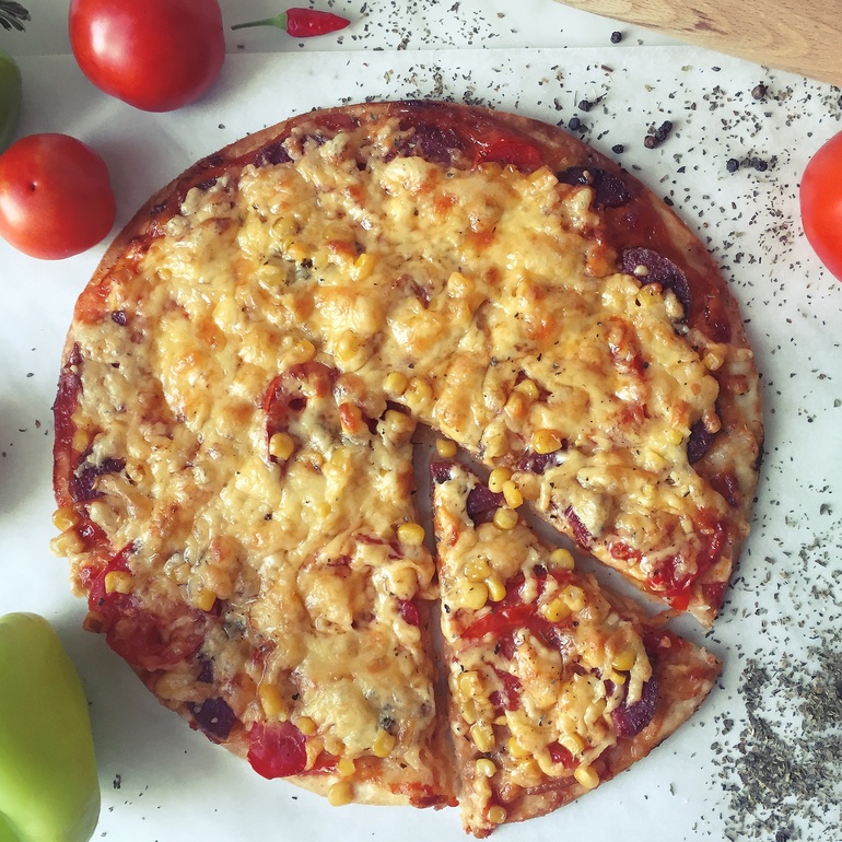 На приготовление такой пиццы вы потратите всего 25 минут, ведь все очень быстро и просто, а получается вкуснее, чем в пиццерии.