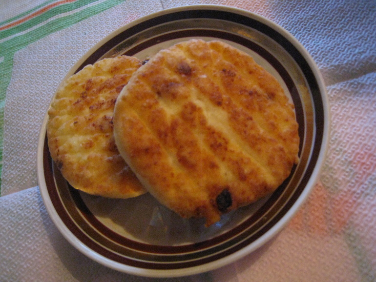 Нам понадобится: творог, манная крупа, яйца, сахар, соль, изюм, мука для обсыпки и сливочное масло для смазывания противня.