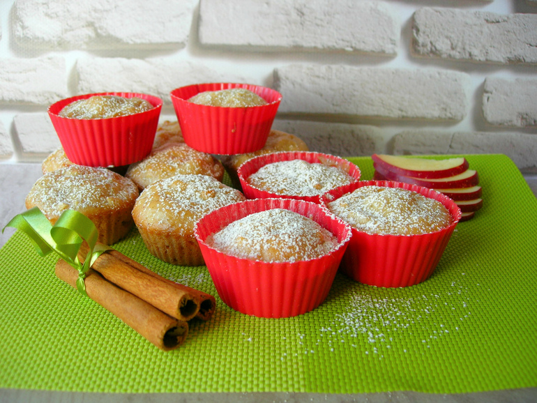 Сейчас время поста, поэтому уверена, что этот рецепт вкусной домашней выпечки многим будет по вкусу. Рецепт простой, несмотря на отсутствие сливочного масла и молочных продуктов, кексы получаются нежными, с насыщенным ароматом яблок и корицы.