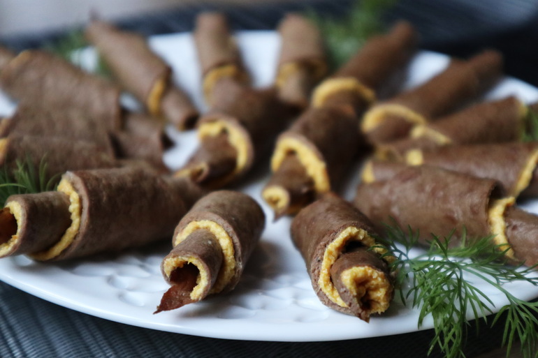 Закуска из блинов, рецепт которой я предлагаю, прекрасно подходит на фуршет или праздничный стол. Она очень ярко смотрится, легко и недолго готовится, получается очень вкусной и нежной. По набору ингредиентов такую закуску можно отнести к бюджетным рецептам.