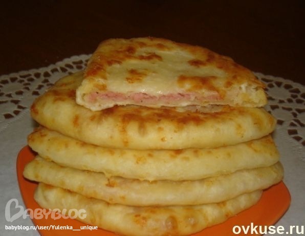 Полученное тесто разделить на колобки, раскатать небольшую лепешку (можно пожарить так), положить начинку (ветчина).