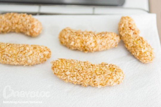 4. Жарить бананы надо пока геркулес не станет золотисто-коричневым. Когда они поджаряться, переложите их на бумажное полотенце. Перед подачей можно смазать медом.