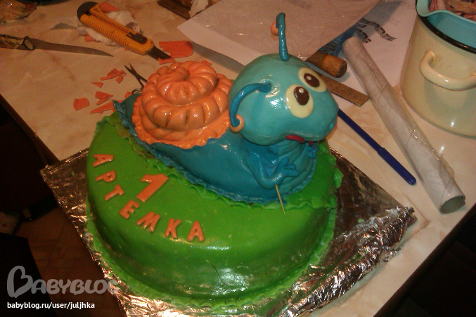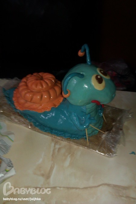 Тортик пекла на ДР младшему сыночку.Как я уже писала, я в основном пытаюсь воспроизвести понравившиеся тортики, а эта улитка меня просто очаровала, инструкции и девочки-мастера очень подробные, потому повторятся не буду. Просто скажу, что рецепт не подвел, а то иной раз возбмешься делать, а результат далек от идеала. Тут все наоборот))