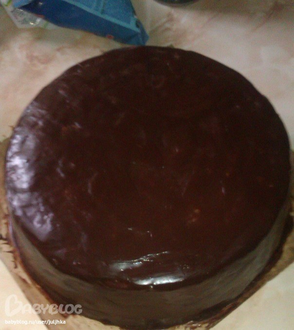 Круглый торт, покрыт шоколадным ганашем (шоколад+сливки)