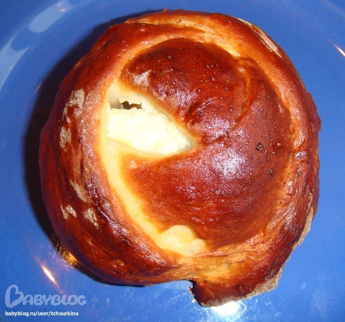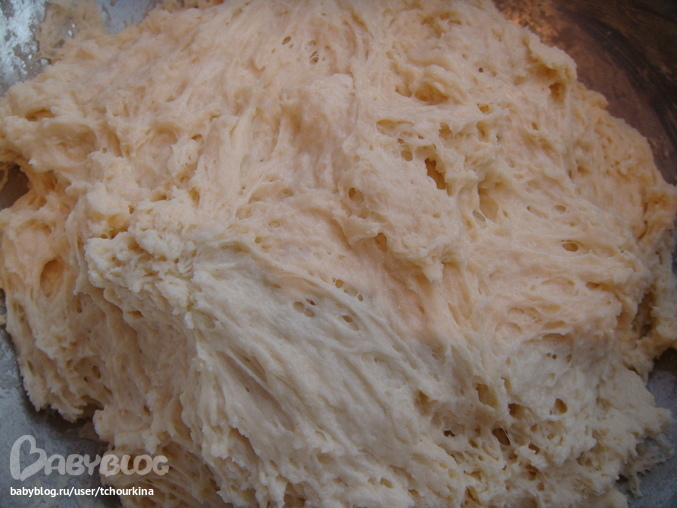 Для теста 300 мл теплого молока (кефира, простокваши, разведенной сметаны) смешать с 100 г сахара, щепоткой соли, 180 г маргарина, пакетиком дрожжей. Вввести суку, замесить некрутое тесто. Дать ему хорошенько подойти. Тесто должно стать ноздреватым: