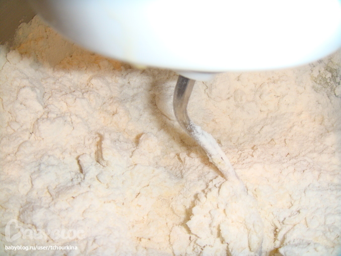 Добавить 1 ст.л. разрыхлителя и 560 г муки: