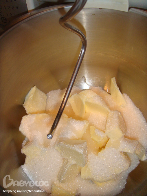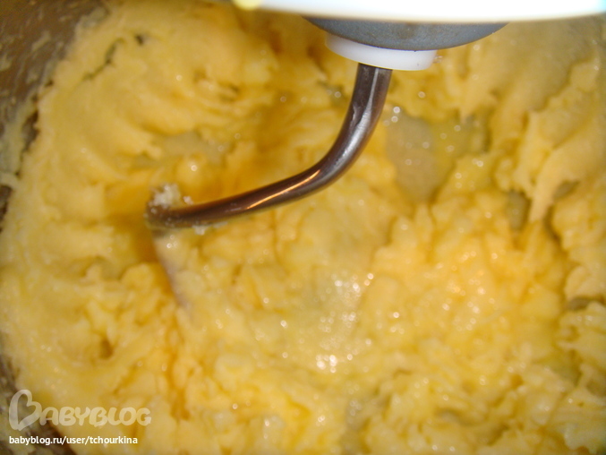 1 яйцо и 1 желток взбить отдельно и понемногу добавлять в масляную смесь: