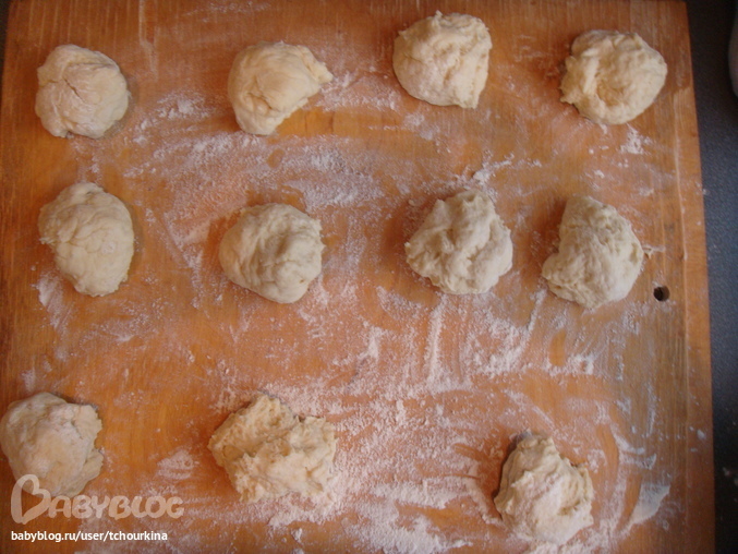 На подпыленную доску выложить комочки теста размером с яйцо: