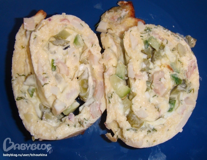 Свернуть теплый рулет, замотать в фольгу, полностью охладить. Затем нарезать: