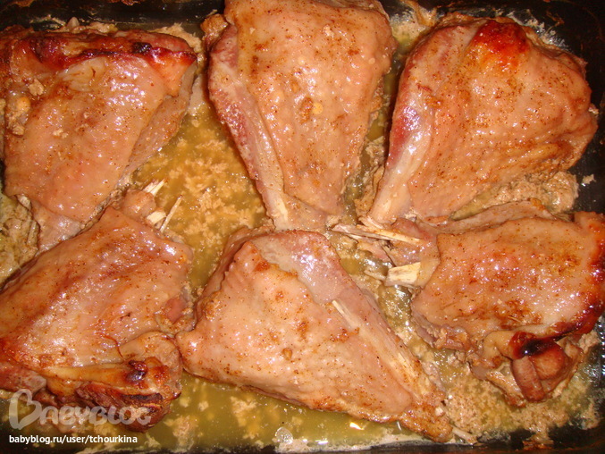 Закрыть форму фольгой и запекать в духовке 40-50 минут. Затем фольгу снять и подрумянить индейку, поливая соусом: