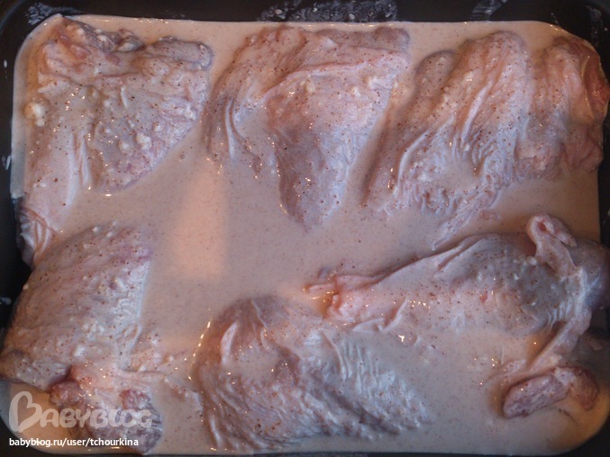 Сметану (кефир, простоквашу и т.п.) смешать с 2 ст.л. приправы:
