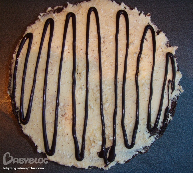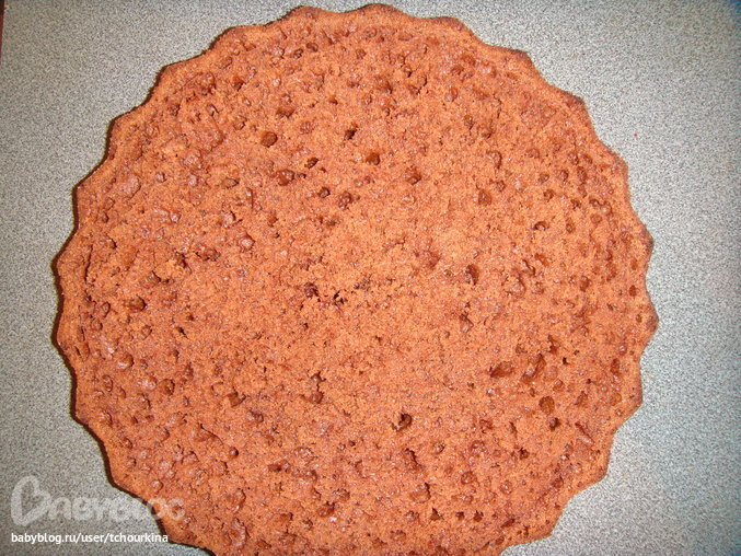 Коржи пропитать сиропом. На нижний корж положить 2/3 крема: