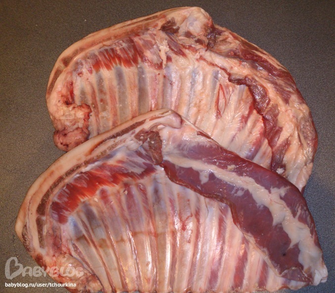 Парной барашек всегда объеденье, а уж на ребрышках! Нарезать баранину на куски: