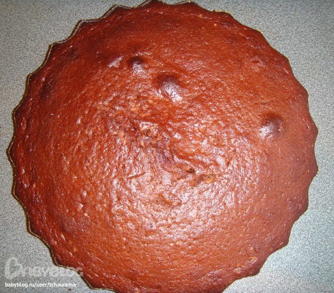 Разрезать торт на 2 коржа. Они очень пористые, пышные: