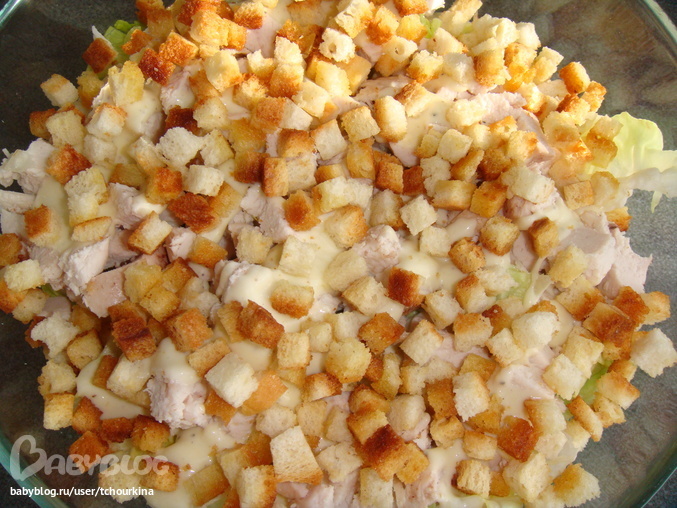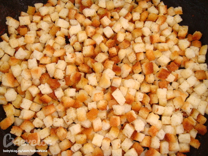 Опять соус и щедрый слой сухариков (вообще-то, крутонов!):
