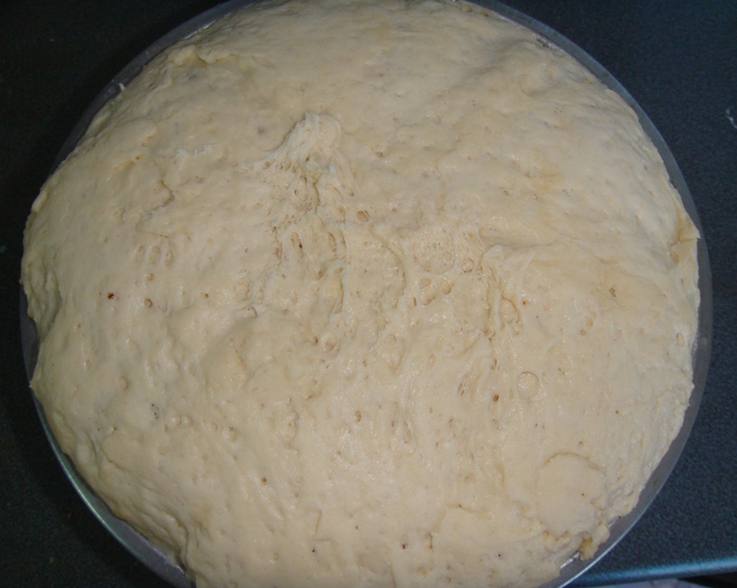 На пол литра молока берем 100 г маргарина, 100 г сахара, щепотку соли, 2 яйца, добавляем дрожжи, муку и замешиваем дрожжевое тесто. Закрываем салфеткой, даем перебродить: