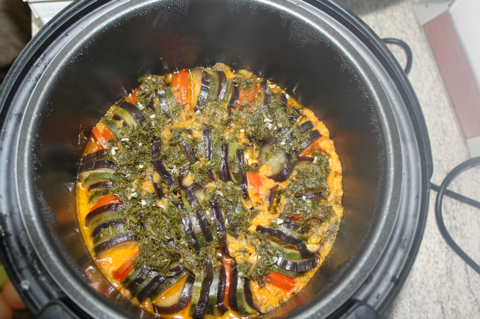 Вчера решила приготовить Рататуй, но не в духовке, а в мультиварочке. Уж очень я люблю баклажаны, помидорки, болгарский перчик... Процесс, конечно, очень длительный. Особенно процесс снятия с болгарского перца кожицы